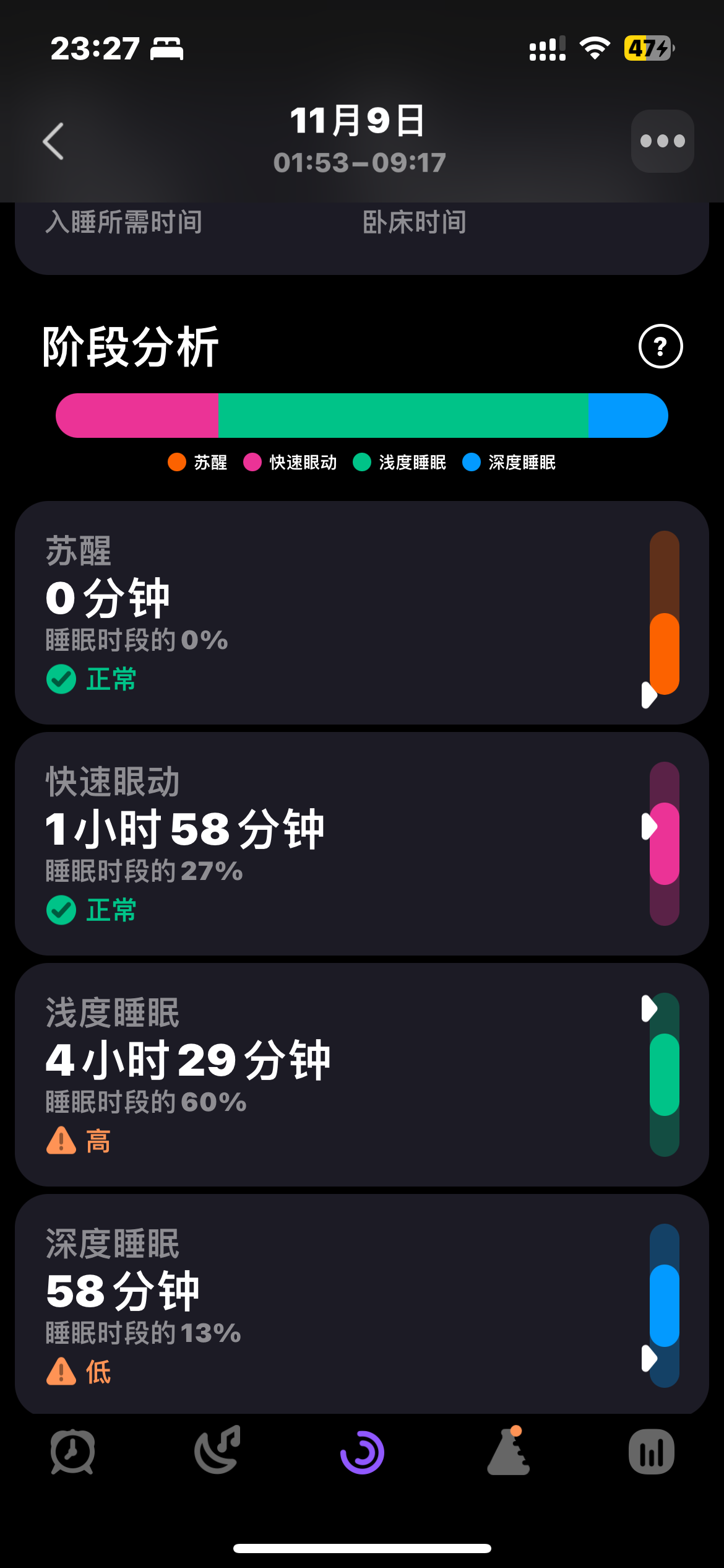 11 月 9 号那天喝了一杯咖啡,然后深度睡眠 1 小时都不到