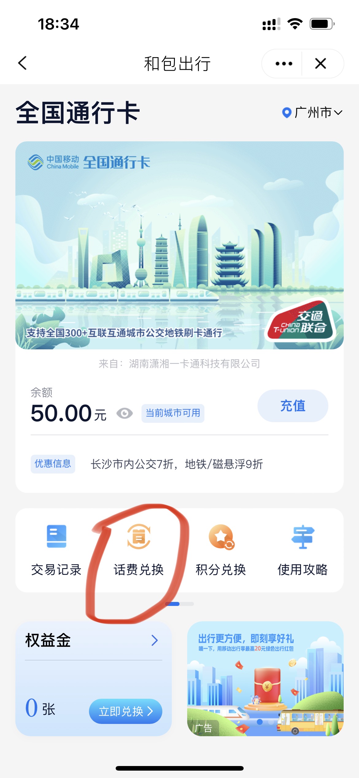 在其它城市可能没有湖南的优惠(公交 7 折,地铁 9 折)