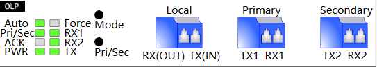 OLP 板卡一般为三个接口,主备两个接口对应一个本地接口。