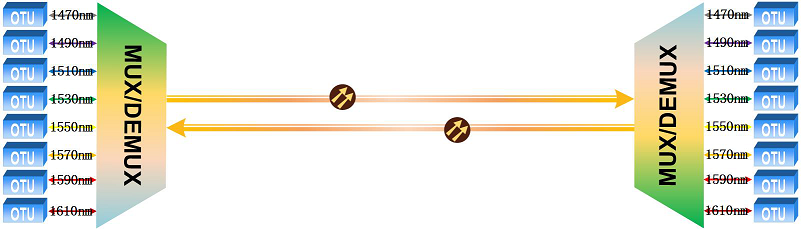 | 遵循标准 | ITU-T G.957 ; ITU-T G.959.1 ; IEEE 802.3 | ITU-T G.694.1 ( DWDM ); ITU-T G694.2 ( CWDM ) |