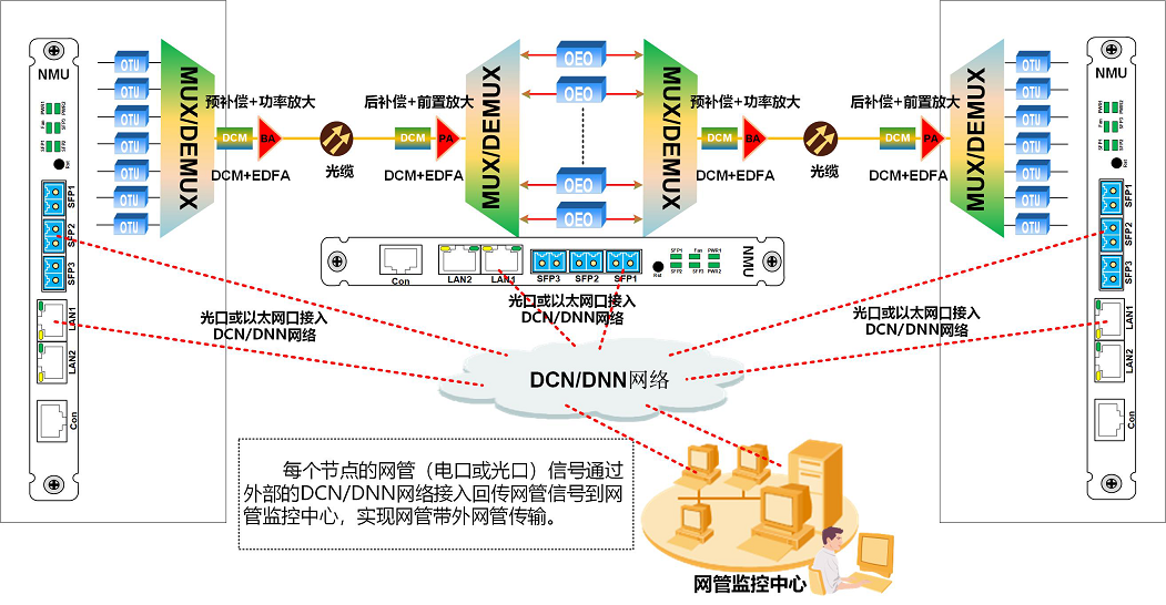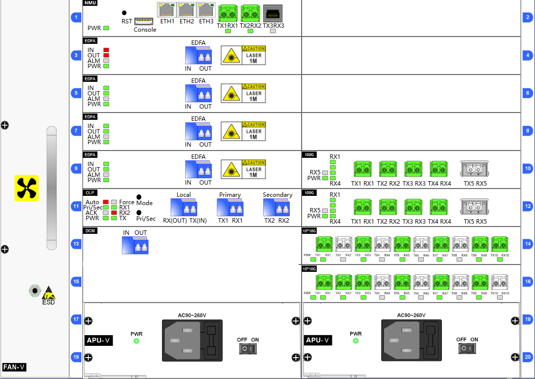 波分是一种大部分依赖于物理连线的设备,机箱只用于供电和连接管理板卡和散热。 而管理板卡只能用于简单的关闭开启和监控,OLP 切换等。