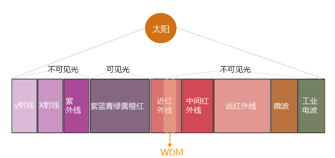 光通信使用的波长范围为 850 ~ 1650 nm ,光模块发的不管“彩光”还是“白光”,都是人眼看不见的。 灰光( Grey ):波长是在某个范围内波动的,没有特定的标准波长,如波分设备的客户侧光口,相应接口称之为灰光接口。 彩光( Colored ):在某个中心波长附近很小的范围内波动,可直接上合波设备,具有标准波长,波分系统中线路单板波分侧光信号,相应接口称之为彩光接口。