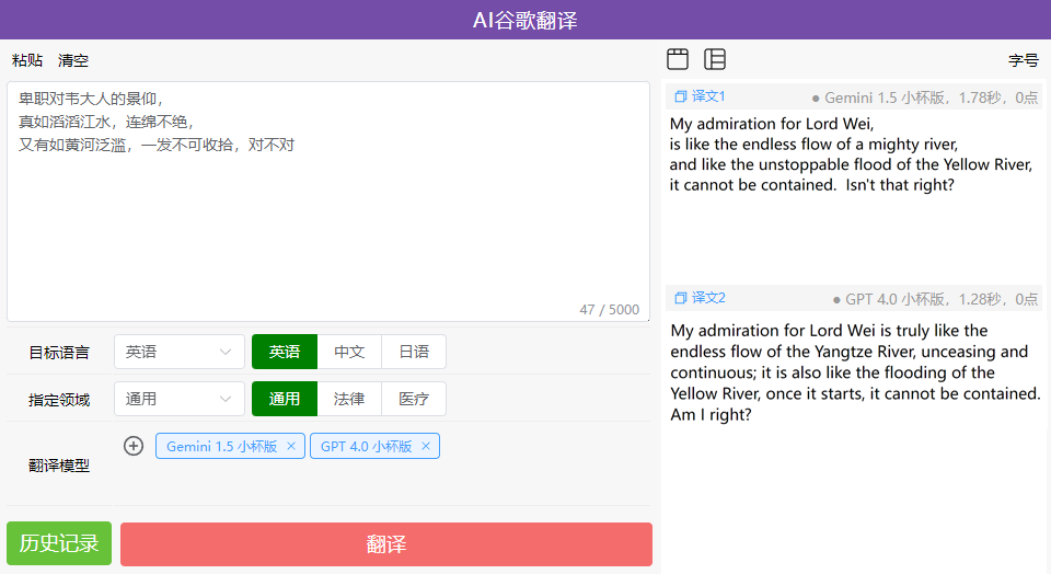 因为它同时集成了 Gemini 和 GPT 双模型翻译,可以额外做一个对比。
